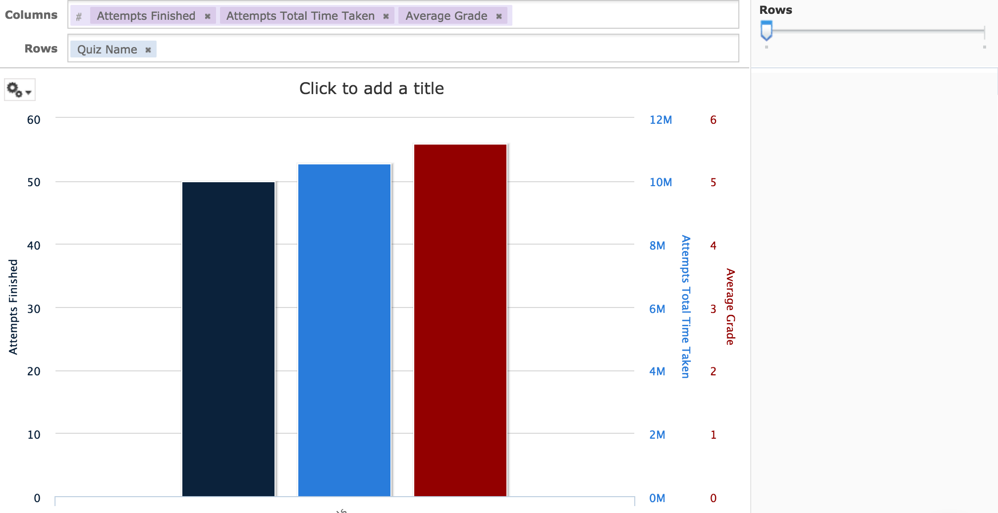 11. In the Filters panel (pictured in the right-side of the previous image), drag the Rows slider all the way to the right, enabling a row for each quiz,