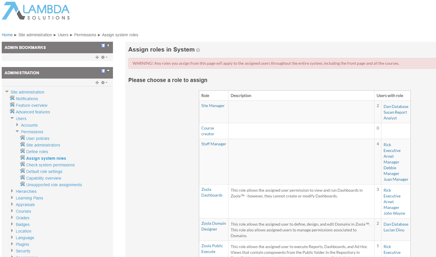 Once you assign any of the Zoola™ roles to an LMS user, they will have immediate access to Zoola™.