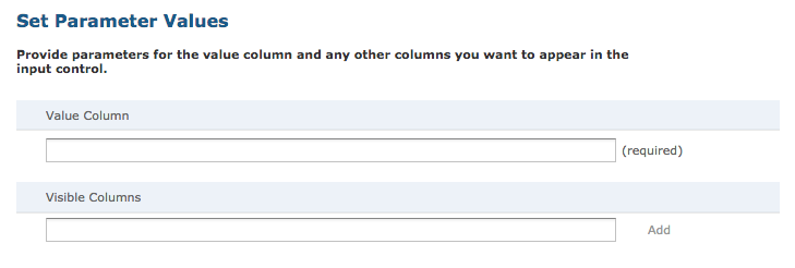 In the Visible Columns field, enter "name" and click the Add button. This enables the Input Control window to present the ID fields by their associated name. In this case, this will display the Course Categories by their proper names instead of their IDs.