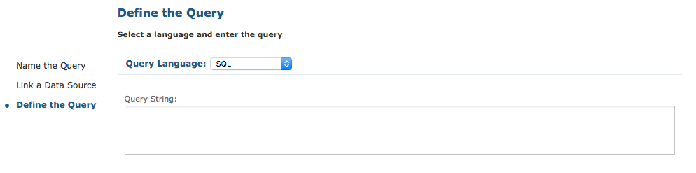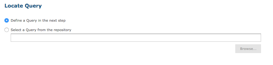 - Select Define a Query in the next step, as you will be entering a new unique query instead of selecting an existing one.