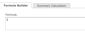 - Generally, calculated measures and fields are built on the Formula Builder tab. However, in this case you will need to enable the Summary Calculation tab. To enable the tab, enter any non-meaningful value into the Formula field: