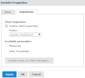 Enable chart hyperlinks: Select or deselect to enable a hyperlink for the Dashlet.